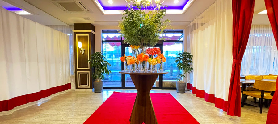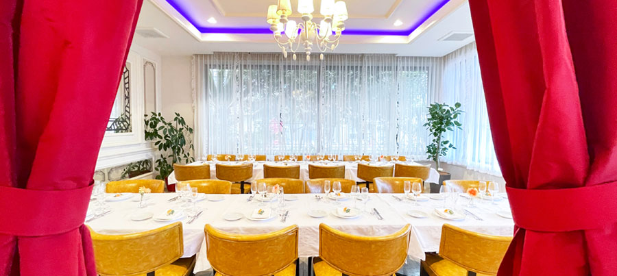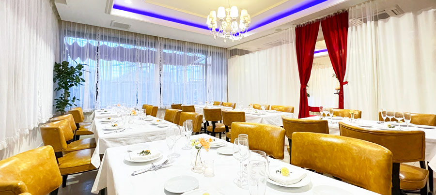 明るい陽射しが差し込む店内での、美味しい朝食をお楽しみください。学生のスポーツ大会時のご宿泊や年末年始のご宴会など、大人数の食事対応可能。