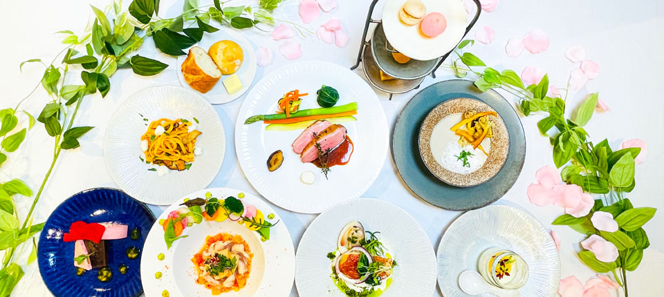 「千産千消」をコンセプトに、地元で取れた食材を使い新鮮シャキシャキの野菜や、ほかほか炊き立てご飯、洋食から和食など、和食派・洋食派どちらにも大満足なビュッフェスタイル。 また2022年11月1日(火)より人気の朝食バイキングは、装い新たに焼きたてパンが登場! 焼きたてクロワッサンはもちろん、パン・オ・ショコラやパン・オ・レザン、色鮮やかなピンクのベリーローフ、さまざまな種類のパンがローテーションでお楽しみいただけます。 しっかりと朝食を食べて、これから始まる一日の活力に!| 会場 | 1F レストラン「DESERT」 |